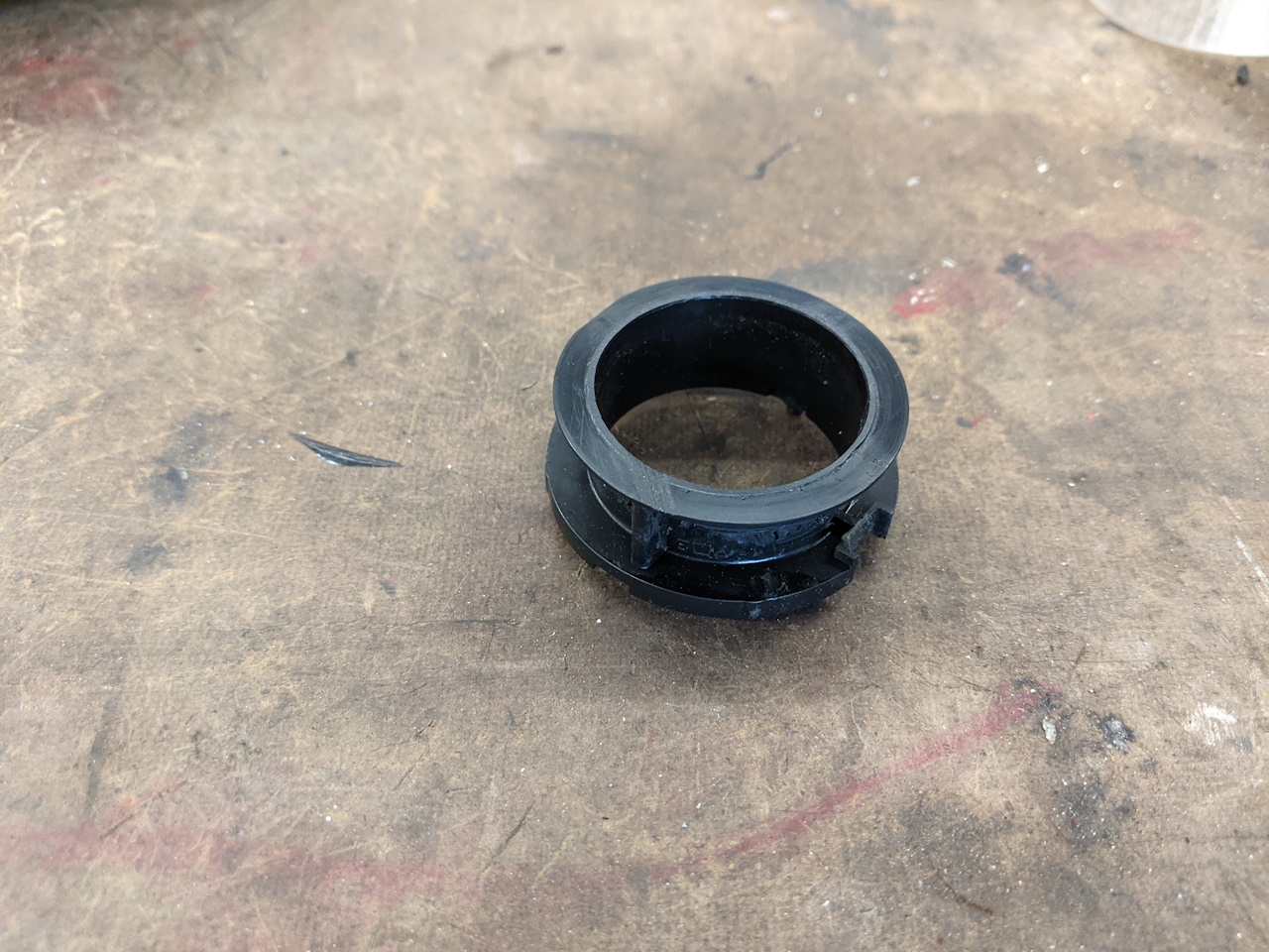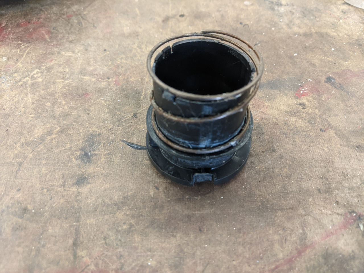 One last step to the combination switch is the plastic thing (I'm not sure what to call it!) that interfaces with the steering wheel and the auto canceling turn signals. It's too long to fit with the end of the Yaris column. I trimmed it shorter as shown below, and while it's a little trickier to install, it works perfectly.