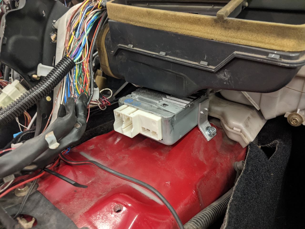 I took the cover off of the Yaris steering ECU and pop riveted two aluminum brackets to it so that the ECU could mount in the stock MR2 air bag ECU location. Perfect fit, and well within reach of the wires from the steering motor, but obviously not an option for someone who still has the stock air bag.