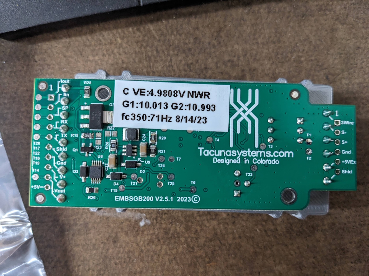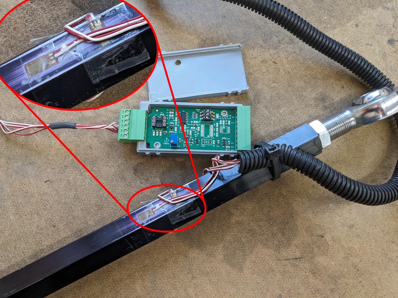 I won't go into detail on what strain gauges are or how they work, there are many good resources for that on the internet. But in short, a strain gauge measures strain (change in length / unit of length) by measuring change in the resistance of an electrical circuit. From the strain data, the force that produced that strain can be calculated provided the geometry and material of the part being measured are well known. The problem is, the changes in resistance are tiny, so a very precise amplifier is needed to produce a voltage signal that is able to be measured. This is the point that often gets quite expensive. The piece that made this relatively affordable was the Tacuna Systems Load Cell Amplifier. I purchased the $100 manual version without the enclosure (I 3D printed my own) and no other special options. The amplifier came with all of the calibration data on a sticker on the circuit board. Handy!