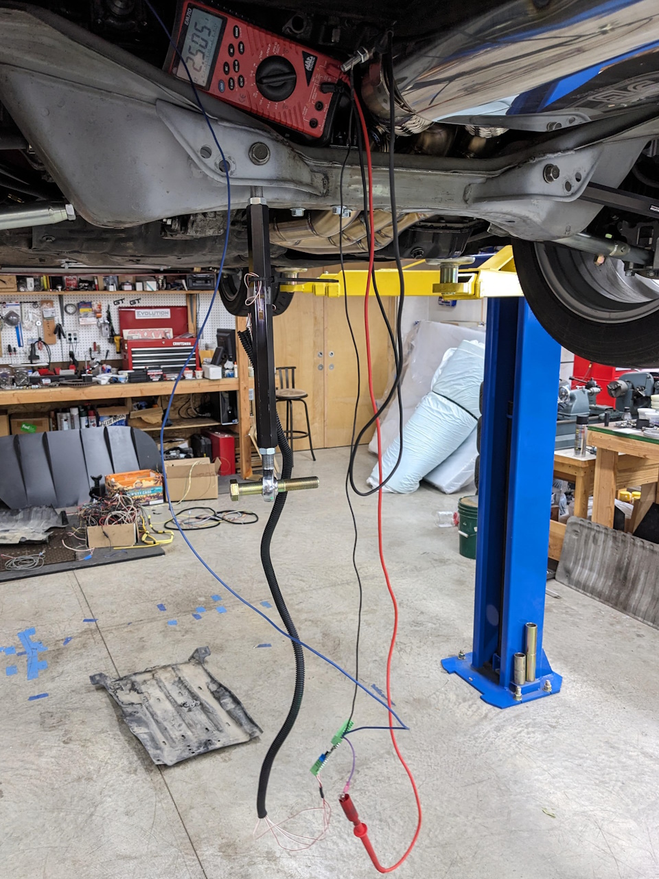Using information from a variety of sources on the internet plus the calibration data for the strain gauges and amplifiers I built an excel sheet to calculate the expected voltage output for a given load on the tie rod. The handy thing about this whole setup with the tie rod is I could disconnect the outer end of the tie rod and with the car the the lift, apply a known weight (my body weight) to the tie rod to check the calibration. It was extremely satisfying (and I'll admit a little surprising) to see the voltage output match exactly to the expected value, to within .001v. Ultimately all of the calibration calculations were more or less just an exercise to prove that it works, as with this setup I could have simply calibrated it directly with a known weight and skipped all the math. It may prove useful in the future however.