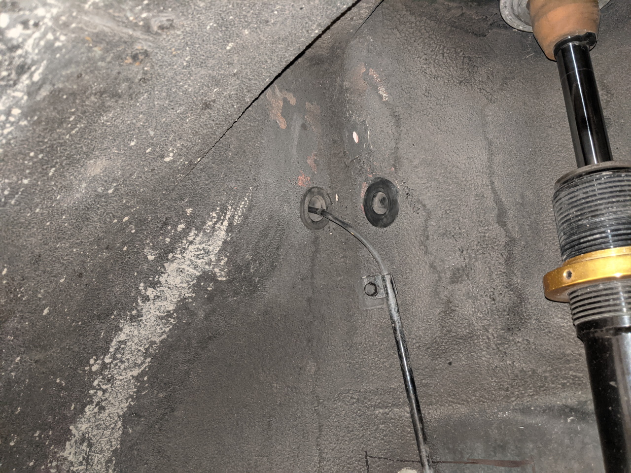 Despite their alternate routing I had just enough length on both this wire and the body harness connector to reach the stock disconnect point for the rear sensors. However I decided to do something a little different and route the sensor wires directly into the trunk rather than through the engine bay. So I drilled new holes from the wheel well to the trunk as shown below. Nice and clean.