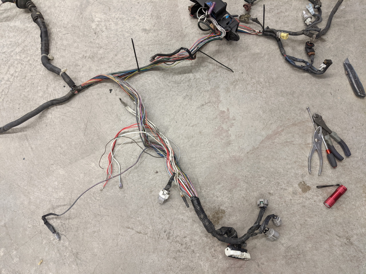 Getting the power steering wiring out of the Spyder harness involves a pretty thorough dissection. Portions of it run nearly from one end of the harness to the other.