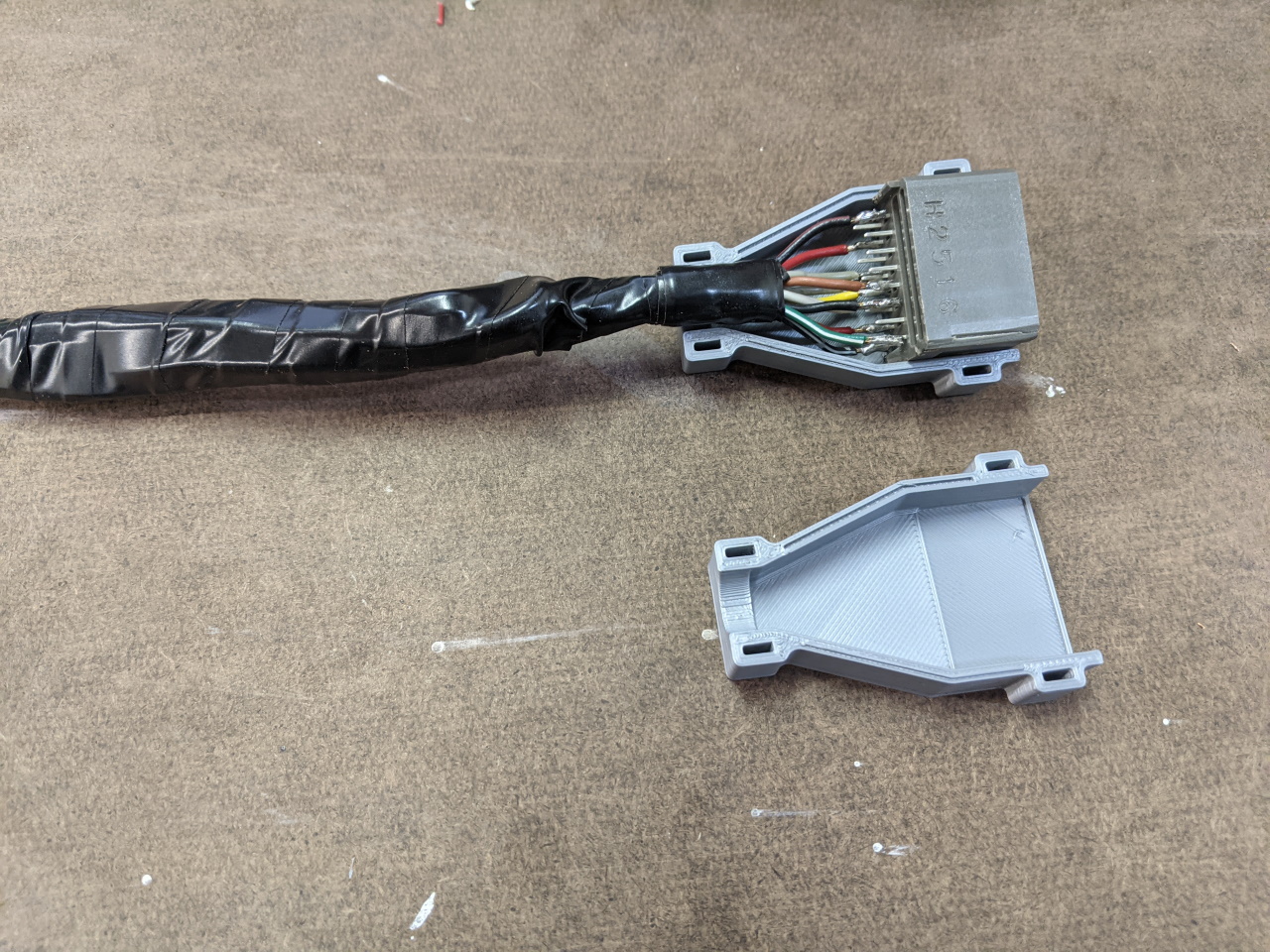 All the other wires go to the 15 pin connector under the dash. I happened to have a connector that matched the connector in the 91 ABS ECU that I had gotten from Tyco Electronics years ago when I was messing with putting the 93 ECU into my 91. You could also salvage the connector out of the old ECU. Since I only needed the small portion I cut it in half, and soldered the wires to it. I 3D printed a back shell to protect the solder joints from being stressed or from shorting on anything.