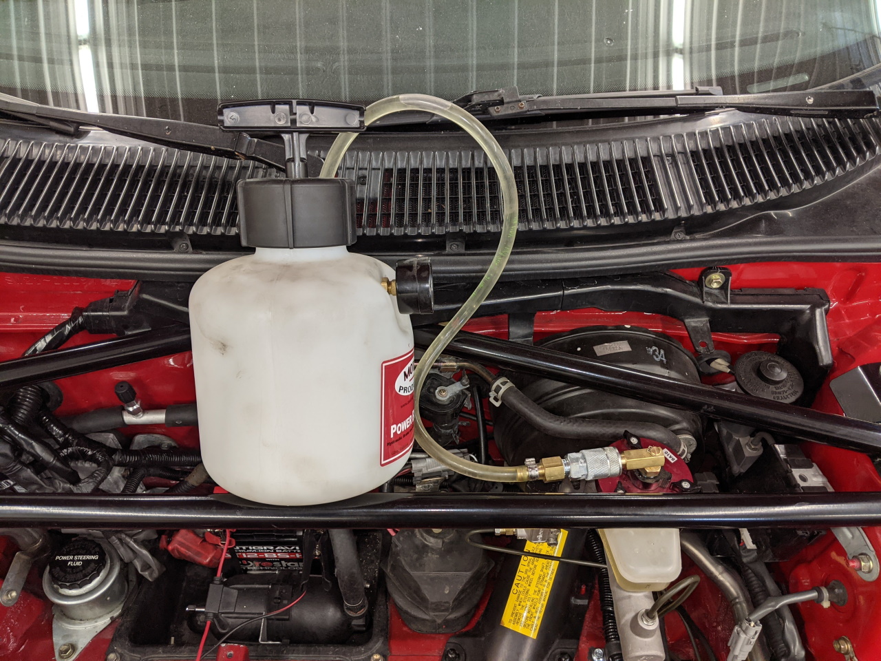 And that's it! Bleed the system, tighten the connections that you forgot to tighten, and it's done! And if you don't have one, get one of these Motive Power Bleeders. Worth every penny! Also, for a big job like this it's handy to use it to push all of the brake fluid OUT of the system so that you can disconnect lines without making a mess. Just pressurize the system with air only and bleed the calipers until only air comes out. Basically the reverse of a normal brake bleed.